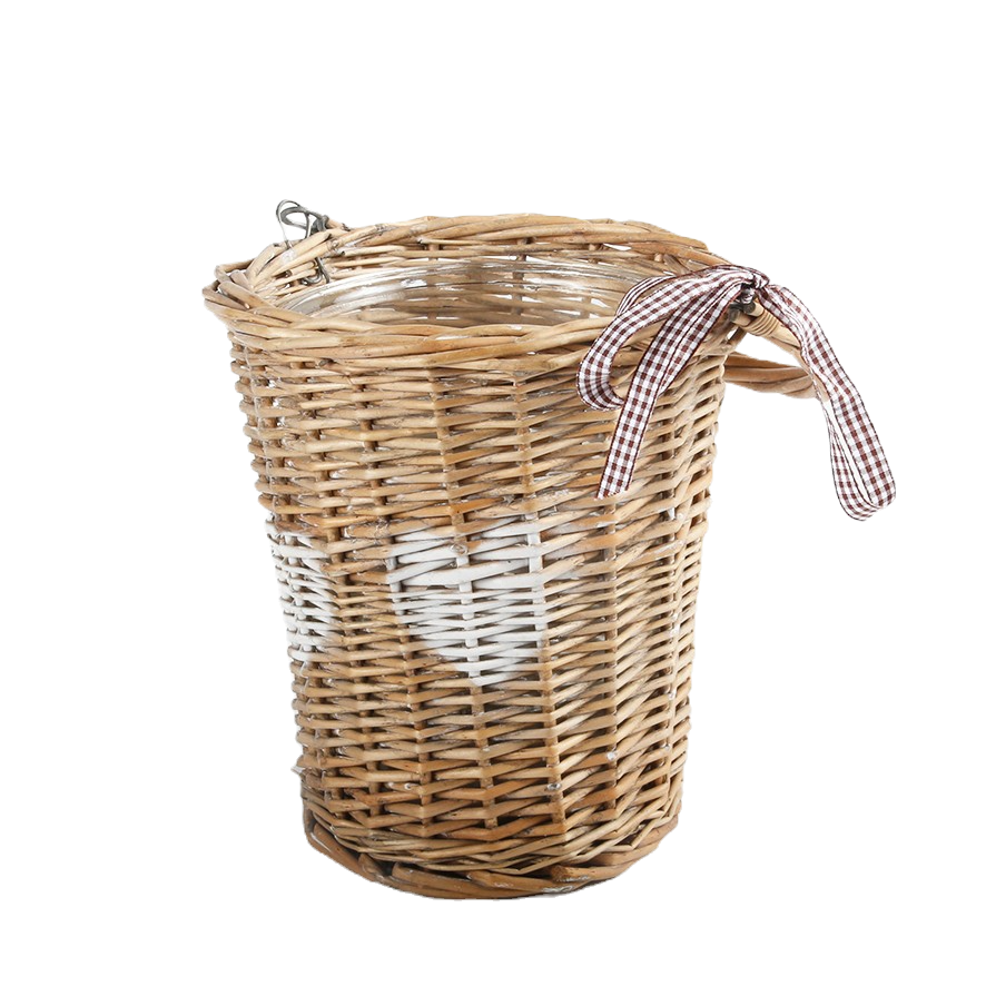 Panier Rotin COEUR avec Vase Pot Verre 19 cm